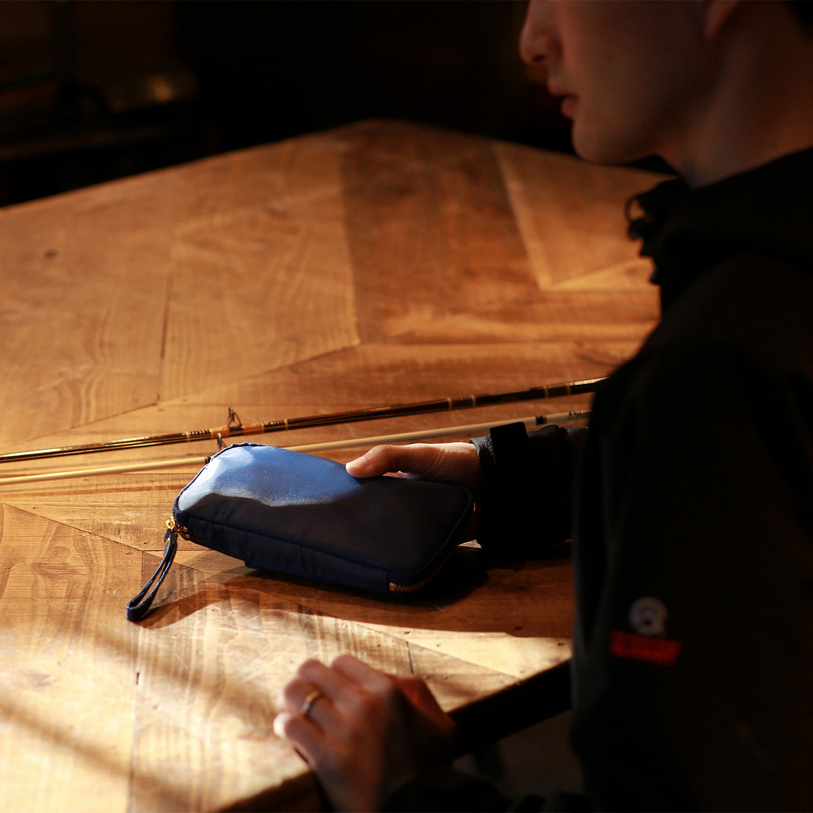 The Small Drawer Pouch is the size of a long wallet and fits writing utensils, cards, charging cables, and other slim items. The pouch can lay open completely flat when it’s unzipped, making it easy to glance inside and grab what you need.