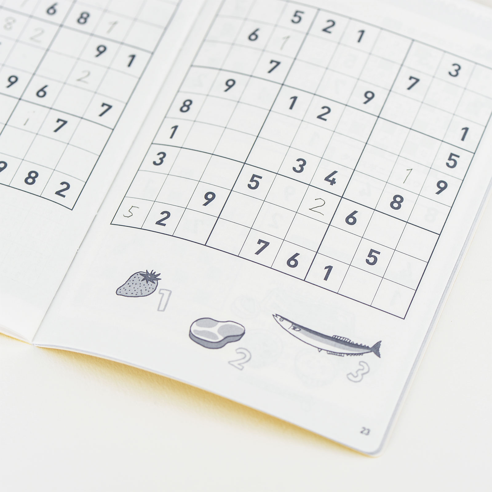 This booklet contains various mini pen-and-paper games to pass the time, such as Japanese crossword puzzles and spot the difference. Sudoku and mazes are provided by game book publisher Nikoli. Some of the spot the difference puzzles feature regulars in the Hobonichi website lineup, including Butafine and Sonigiri-kun. The puzzles are fun to play when killing time alone, or when spending quality time with family and friends.