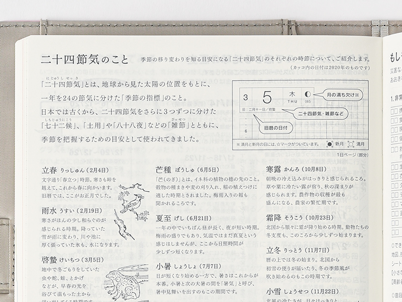 This section explains the names and origins of solar terms that make up the 24 points in traditional East Asian lunisolar calendars. These include well-known days such as the start of spring and the winter solstice.