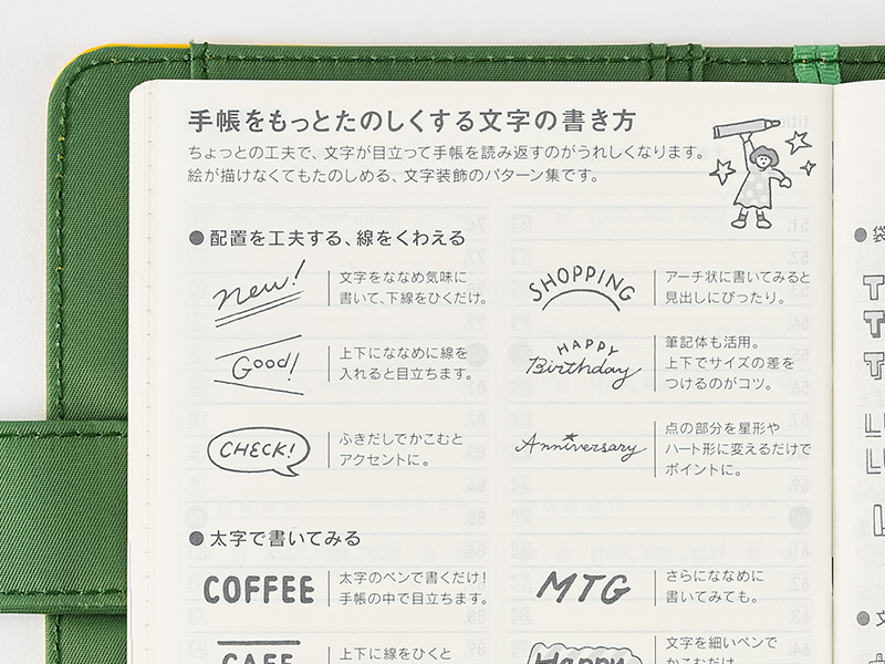 The thin, light paper, called Tomoe River paper, is strong, resistant to bleeding, and allows ink to dispense smoothly across the paper — an ideal choice for a planner.