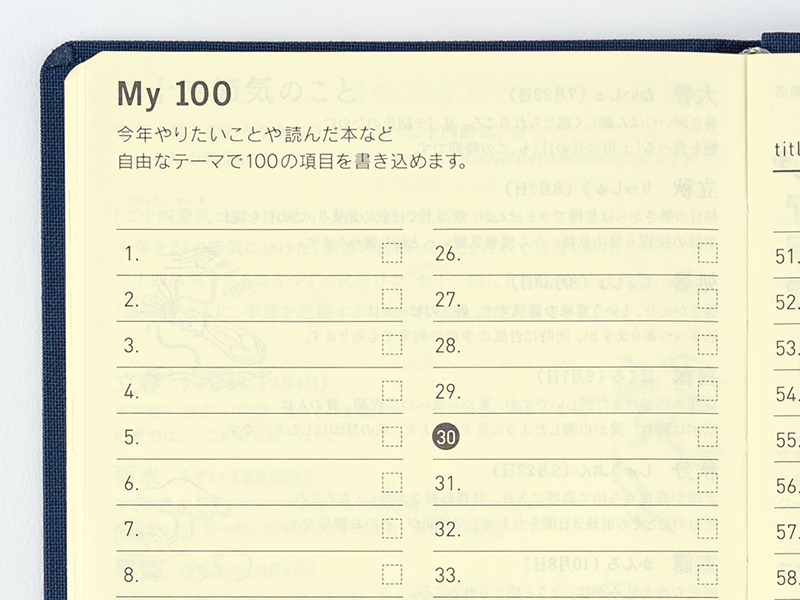 This popular 100-item list from the 2018-edition Hobonichi Techo has made its comeback. You can make a list for anything you want: things to accomplish this year, books you’ve read, movies you’ve seen, snacks you’ve tried, shops you want to visit — it’s up to you!