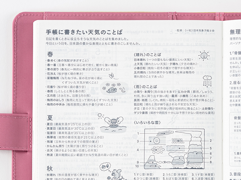 The thin, light paper, called Tomoe River paper, is strong, resistant to bleeding, and allows ink to dispense smoothly across the paper — an ideal choice for a planner.