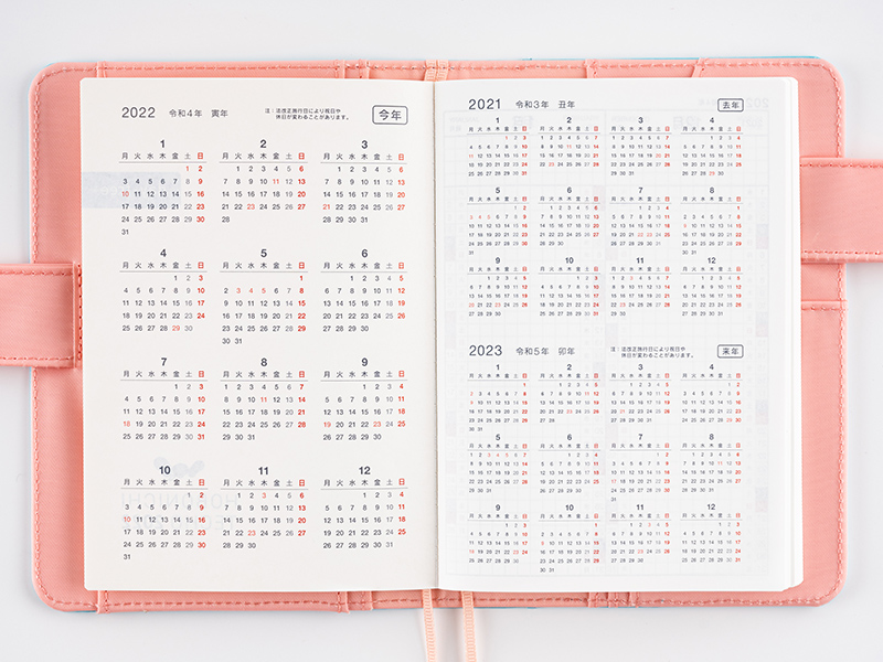 A convenient double-page spread shows the yearly calendars for 2021, 2022 and 2023 at one glance as a useful reference when planning ahead.