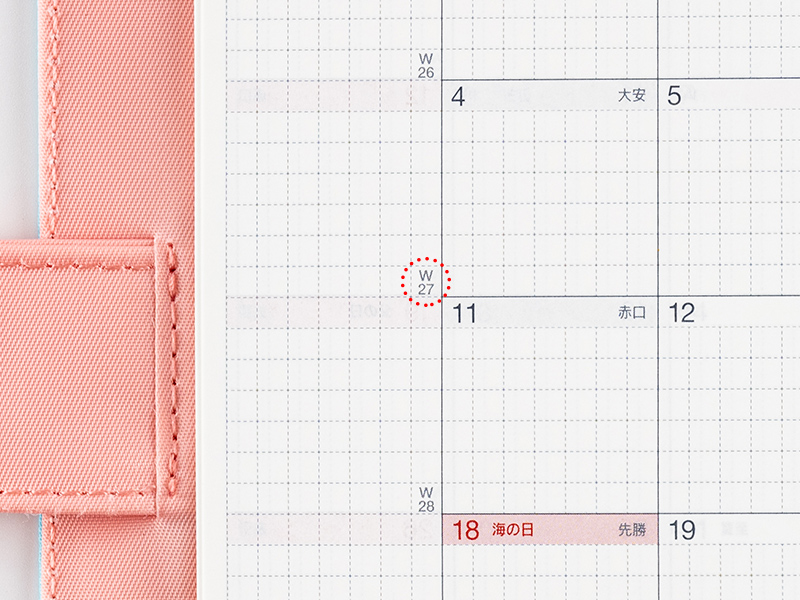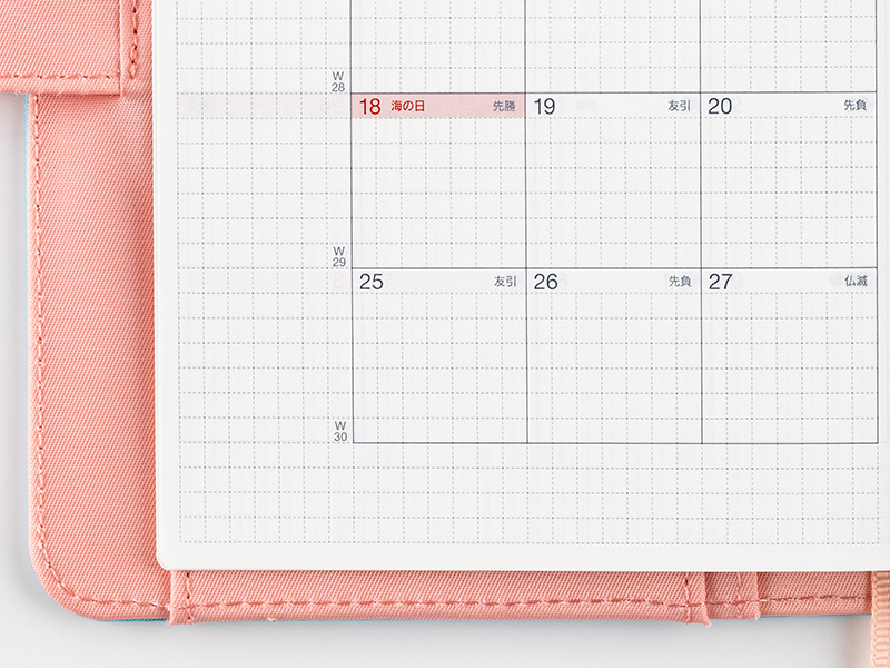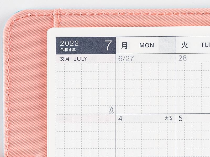 The monthly calendar is ideal for managing schedules. The graph paper design is lightly printed to make it easier to write in your plans and take notes in an even line. The blue gray and red print both allow for high visibility when writing in the calendar.