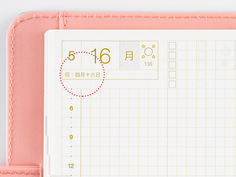 The date of the old Japanese lunisolar calendar is also included under the day’s date. This calendar was used in Japan until 1873, when Japan adopted the universal Gregorian calendar. Some days in this lunisolar calendar are specified as standard days signifying the changing of the seasons. We’ve also included solar terms based on this ancient calendar.
