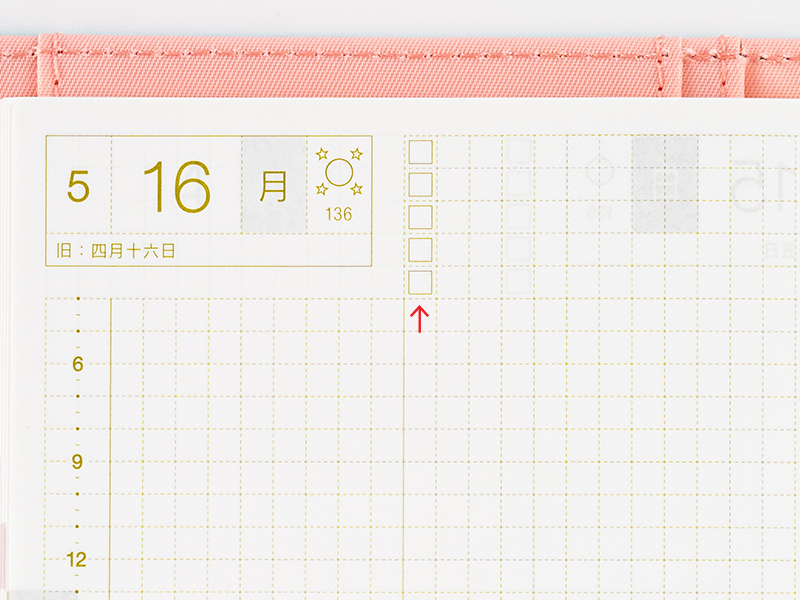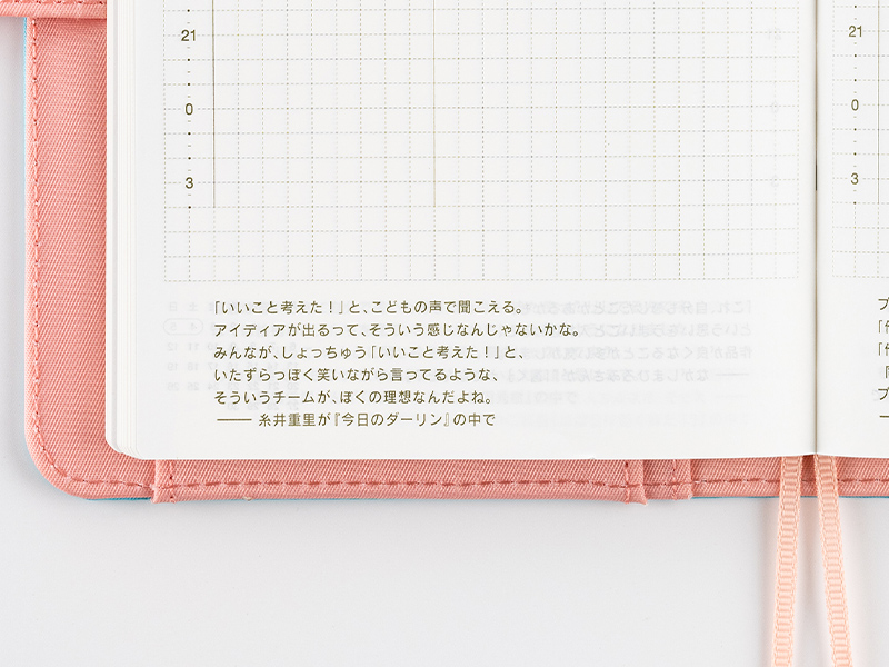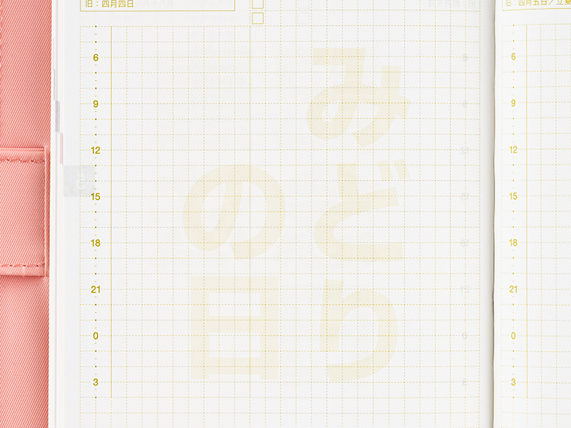 The Japanese planners have slightly smaller graph paper than the English version. The 3.7 millimeter graph paper was the result of extensive tests for an ideal size for writing in Japanese, although the size also allows comfortable writing in any language. Feel free to write along the lines of a single line or two ― or just ignore the lines altogether.