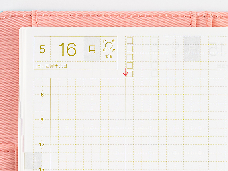 There’s also something we call the “Secret Line”: a vertical line that runs parallel along the right of the timetable. This separates the schedule on the left from the open memo pad on the right. We’ve printed it lightly enough that you can ignore it when using the page as a whole.