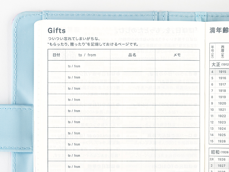 Record the presents you’ve given or received in the Gifts page so you don’t forget who gave what to who and when. This is also helpful for thank-you cards. There are spaces for 17 entries.