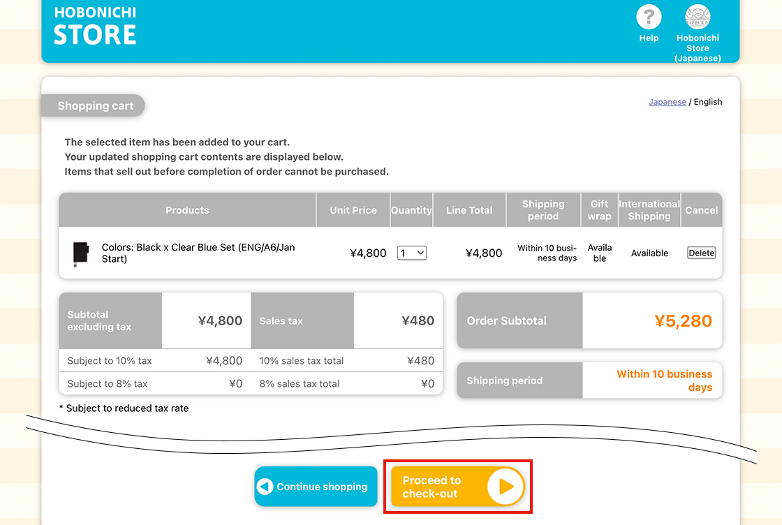 *All Hobonichi Store orders require an account to complete a purchase. New accounts can only be made at the time of a purchase.