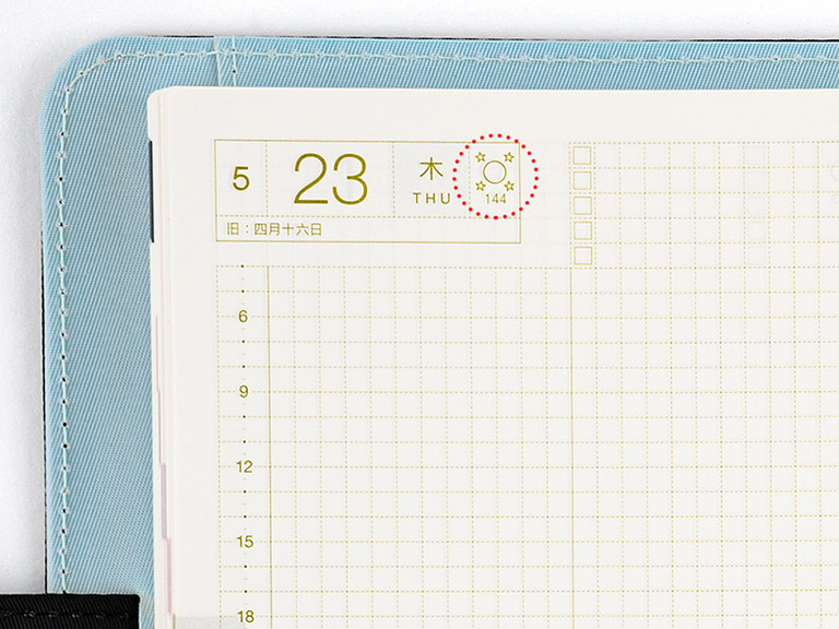The date of the old Japanese lunisolar calendar is also included under the day’s date. This calendar was used in Japan until 1873, when Japan adopted the universal Gregorian calendar. Some days in this lunisolar calendar are specified as standard days signifying the changing of the seasons. We’ve also included solar terms based on this ancient calendar.