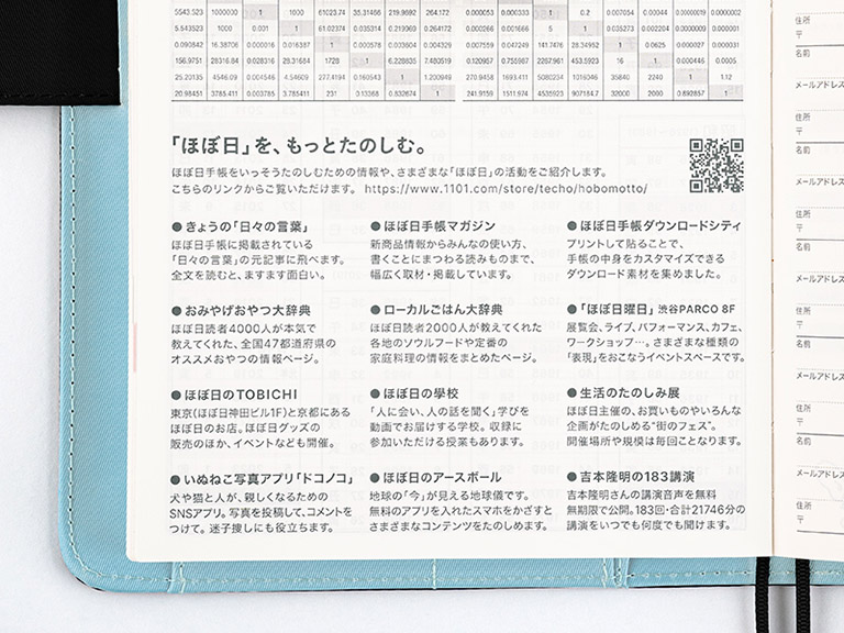 This page includes information to further enjoy your Hobonichi Techo and an introduction to what Hobonichi does. Also contains a link to a list of Japanese articles the quotes are selected from.