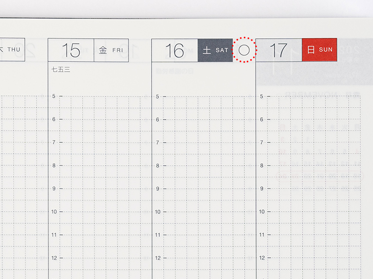 Japanese holidays are printed in a light ink to make it easy to write over them.