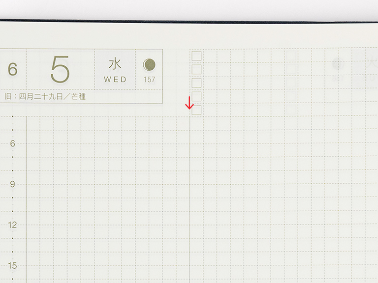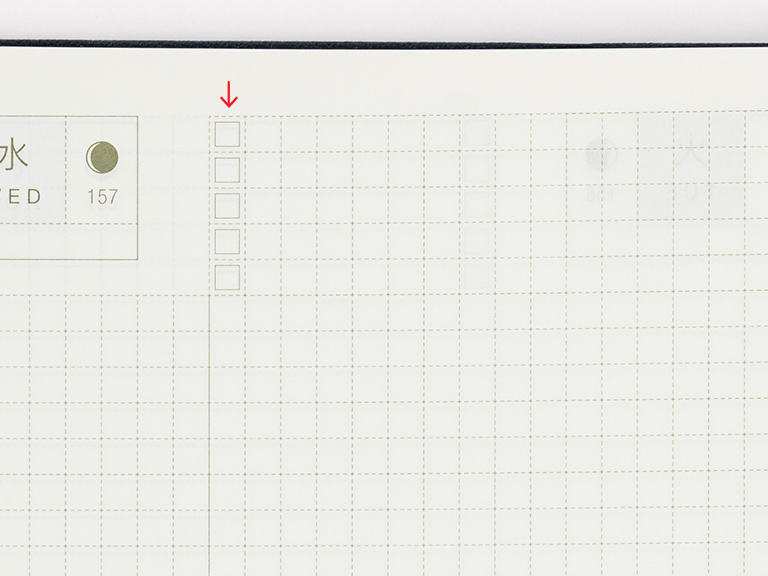 Each box is lightly printed with a graph design to make it easy to fill in a full day’s worth of plans. You can also take full advantage of the graph design by drawing out sections to allocate plans or entries visually.