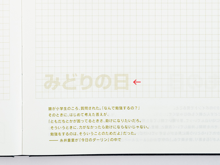 The 3.7 millimeter graph paper was the result of extensive tests for an ideal size for writing in Japanese, although the size also allows comfortable writing in any language. Feel free to write along the lines of a single line or two ― or just ignore the lines altogether.