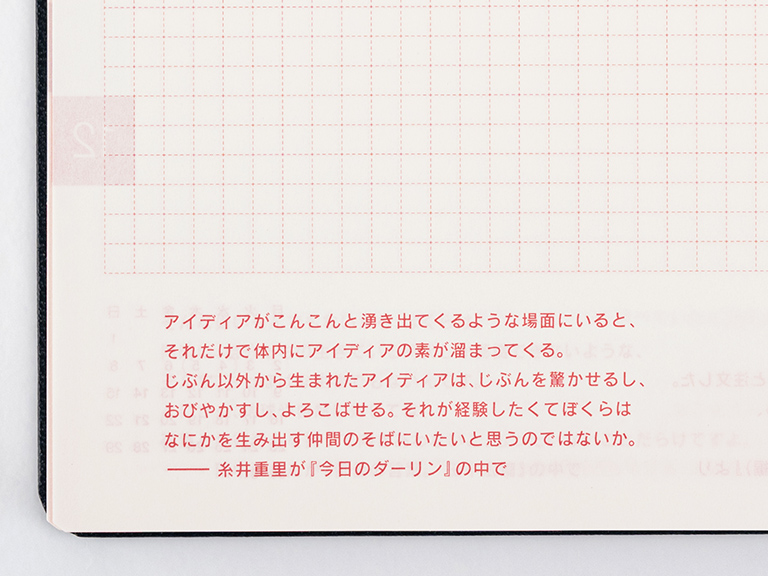 Each spread of the planner features a quote specially selected from the planner’s parent site, Hobo Nikkan Itoi Shinbun.