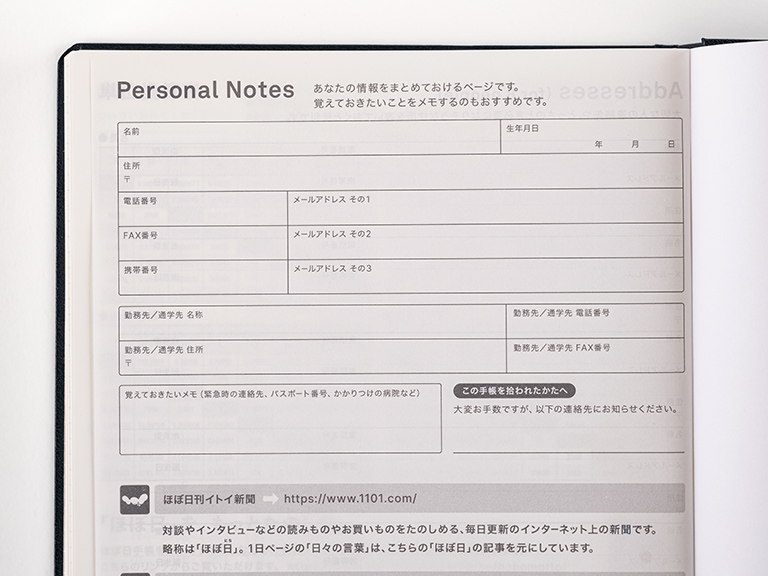 Be sure to enter your contact information on the Personal Notes page in the back of your planner in case it’s misplaced.