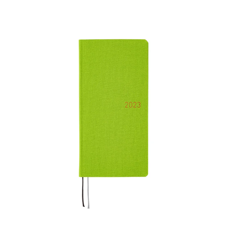 Silver White is made from cow leather, with a dazzling silver finish that gives the fine natural wrinkles of leather an expressive sparkle. Despite its gorgeous looks, it gives an impression of elegance rather than gaudiness. The year 2023 is foil-pressed in silver and matches well with the cover color.