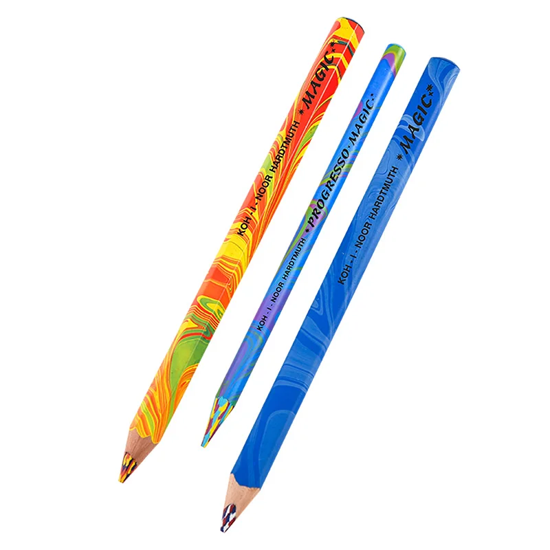 Koh-I-NoorSpecial Colored Pencils - MagicThis unique set of three marbled pencils in different shapes and thicknesses is a classic design by Koh-I-Noor, a venerable Czech stationery maker.