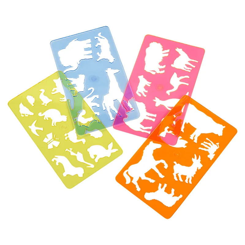 The plastic body has a considerable thickness and comes in 4 colors. Orange has the shapes of familiar animals such as a cow, horse, sheep, and pig. Blue allows you to draw large animals such as an elephant, lion, and giraffe. Yellow has small animals such as a fox, rabbit, bird, and butterfly. Pink lets you draw exotic animals such as a camel and kangaroo.
