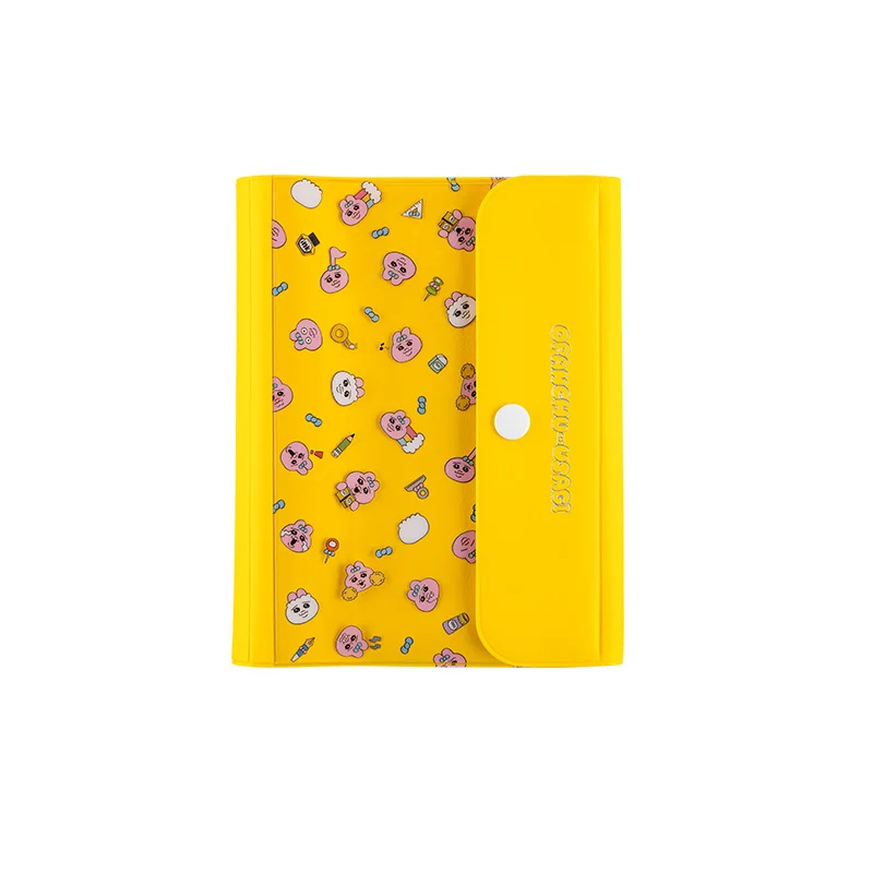 “Opanchu Usagi (Stationery)” is a bright yellow techo cover that cheers you up just by the look of it. You can find Opanchu Usagi in various styles with illustrations of pencils, erasers, paper clips, and other stationery items unique to Hobonichi Techo. The trifold design snaps shut with a button. The Hobonichi logo is foil-pressed in silver on the flap.