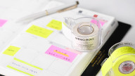蛍光イエローと白の、貼ってはがせる紙テープです。
