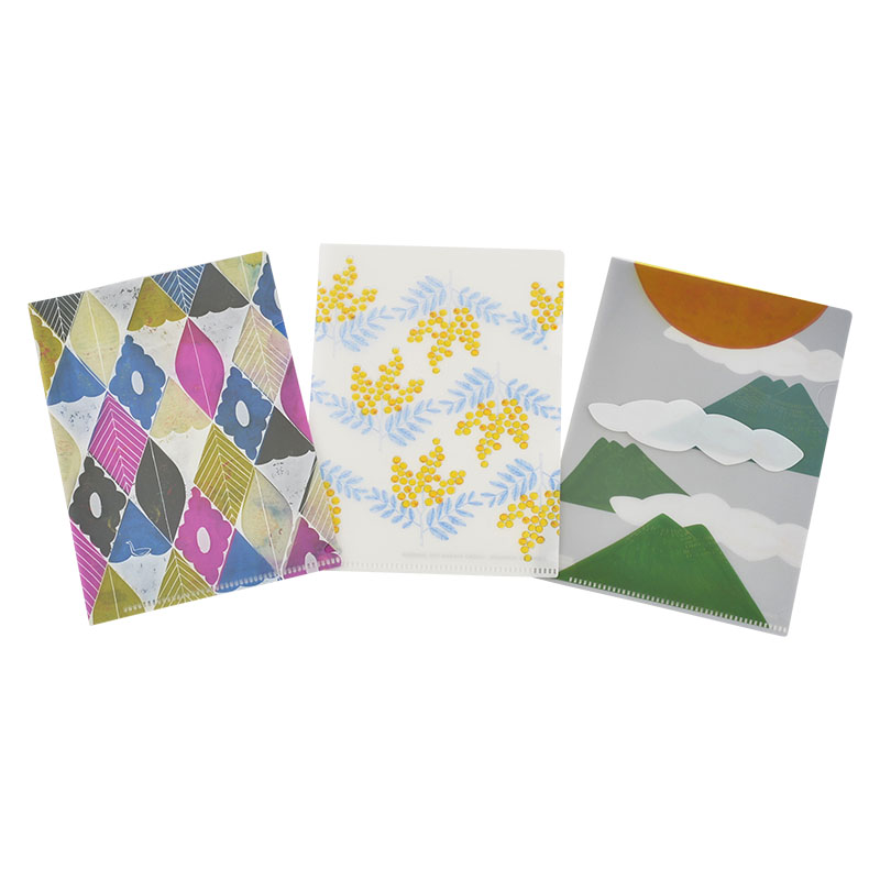ほぼ日手帳オリジナルと同じサイズのクリアファイル3枚セット。安原ちひろさんによるデザインです。