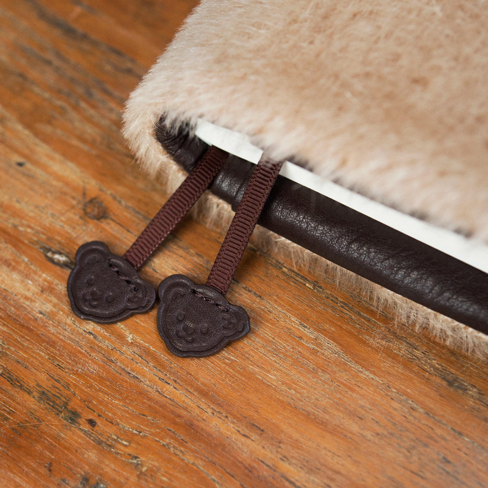 表がわに使用している生地は比較的毛足が短いため、生地を折り返している部分で、場合によって基布が見えることがあります。あらかじめご了承ください。