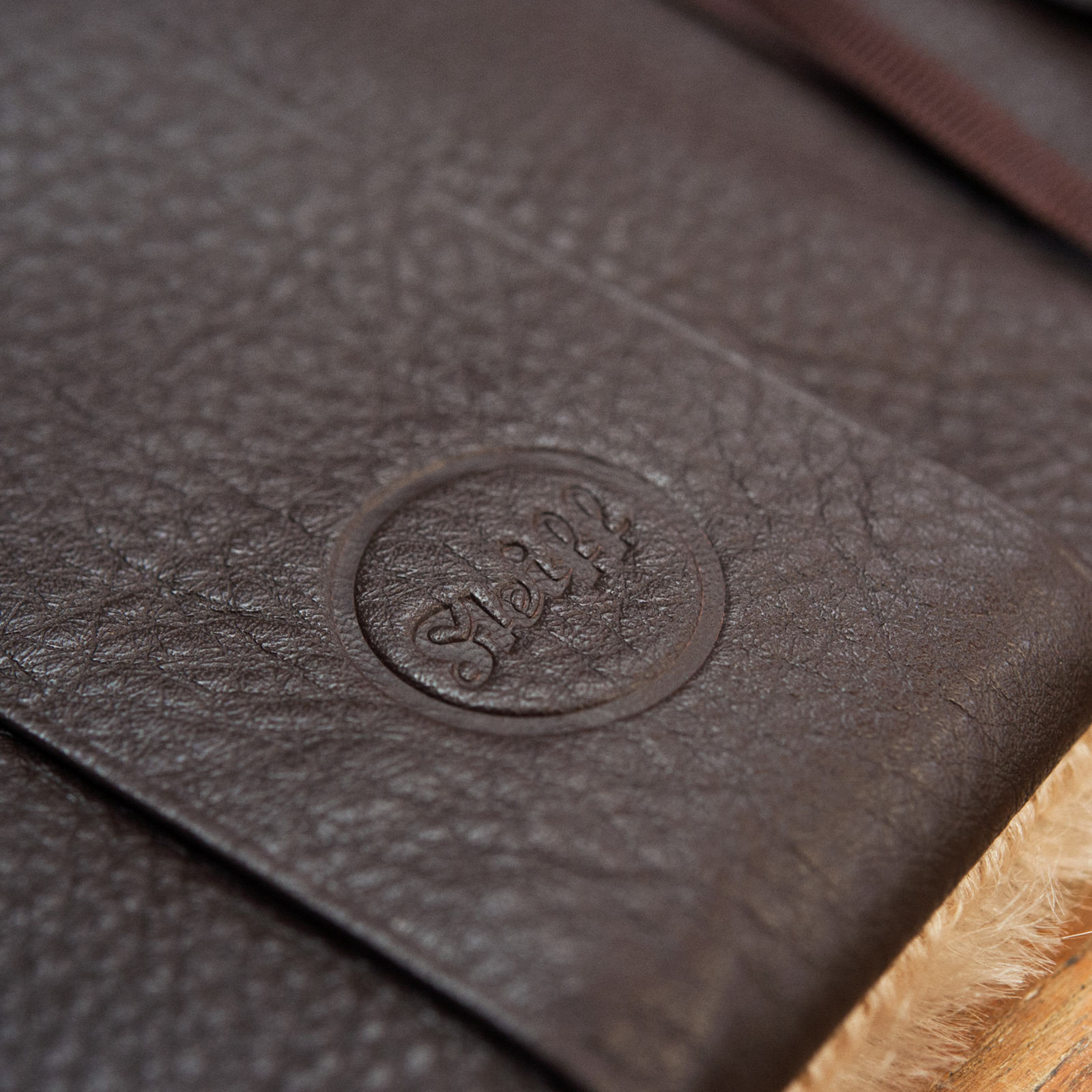 カバー上部についている「ボタン・イン・イヤー」は、ドイツでひとつひとつ手作業でつけています。
