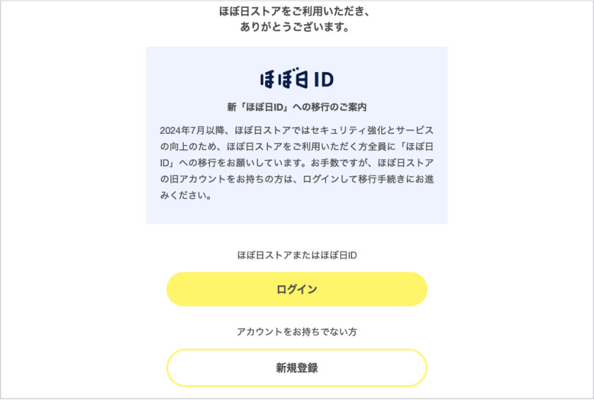 「ほぼ日ID」への移行手続きをお願いしたします。