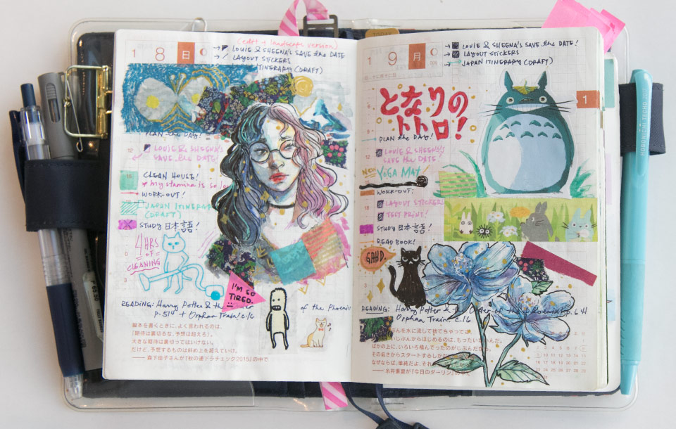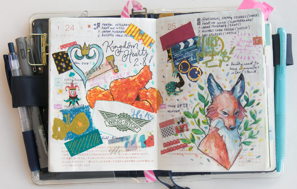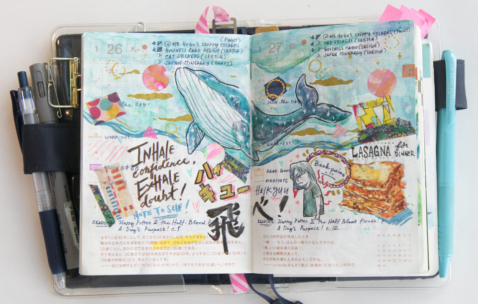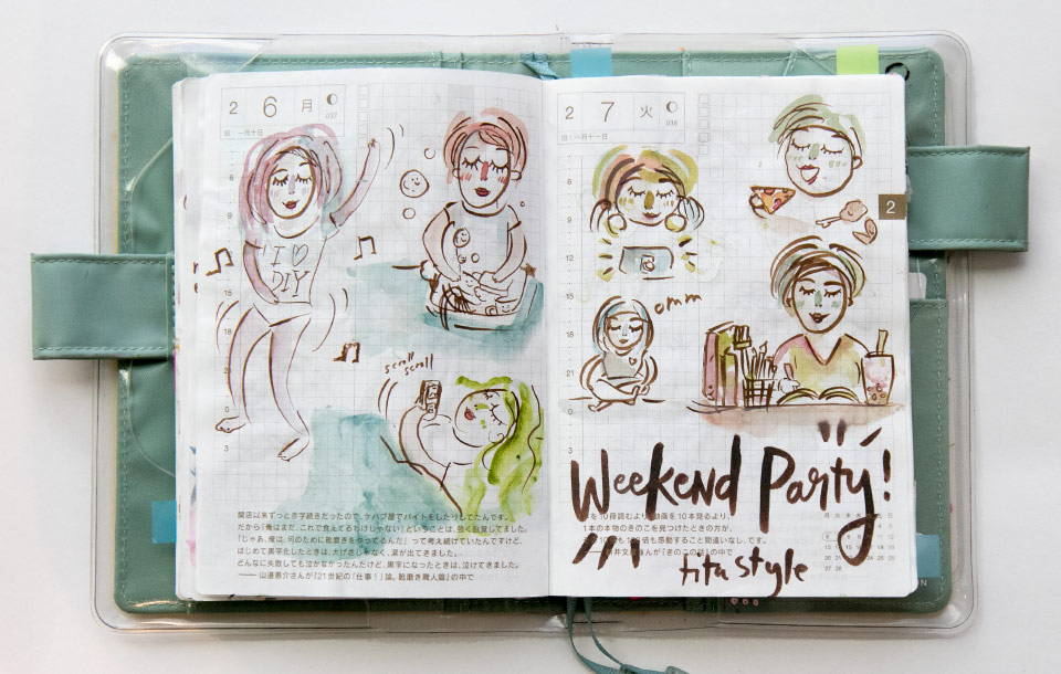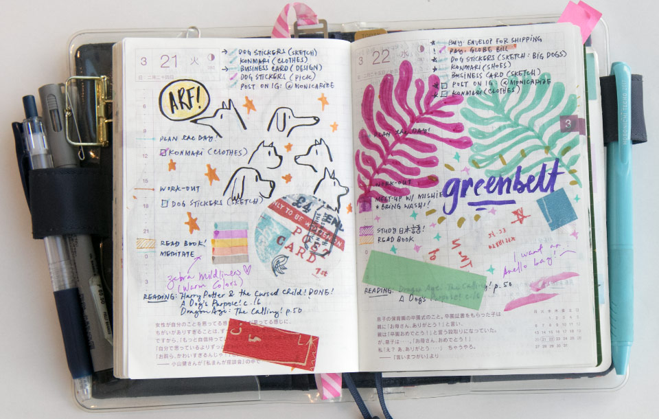ほぼ日手帳を使い始めたのは、今年から。いろんなことを書き込んで便利に使っています。夜に、次の日にやらなければいけないタスクを書き出したりすることが多いかな。昨年は月に1~2回ぐらいしか絵を描かなかったんだけど、いまは、ほぼ日手帳が大好きだから毎日描いています。日本語の勉強をしているので、その勉強時間をメモしたりも。仕事のタスクも、手帳に書くことでよりこなせるようになりました。