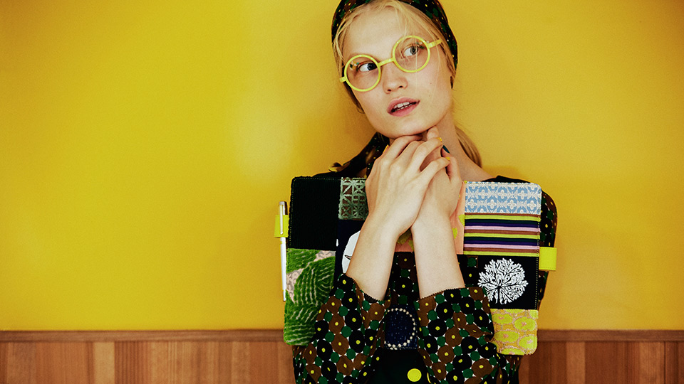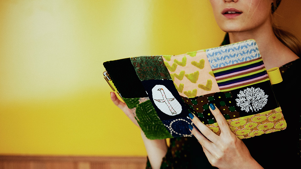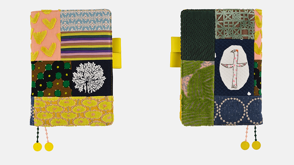minä perhonen is a clothing brand that uses original, in-house fabrics which start from artwork by designer Akira Minagawa and are polished into embroidered, woven, dyed, and other meticulously crafted textiles. "piece," patchwork covers are made with all the leftover pieces of textiles saved when creating clothing and handbags so they don't go to waste.