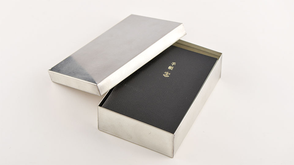 This postcard-size square tin container is an original item by SyuRo, an artisan brand that carries on Japanese tradition and craftsmanship in their durable household utensils. The container is great for storing postcards, photographs, and small accessories that gather around your desk.