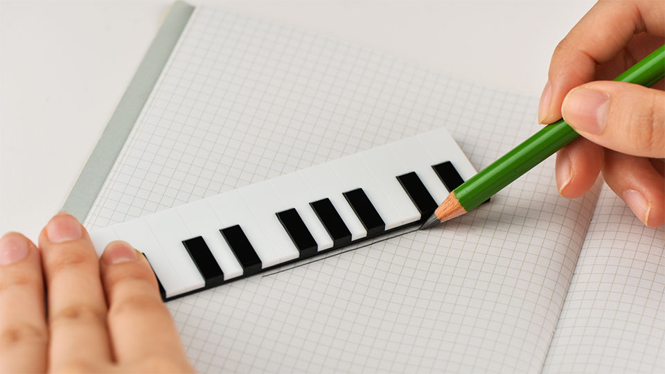 Not only does this ruler feature a fun, playful design, the smooth material by acrylic manufacturer ZEROMISSION brings it all together for an attractive look. It also stays true to its motif as the size scale of white keys to black keys is the same as a real piano.