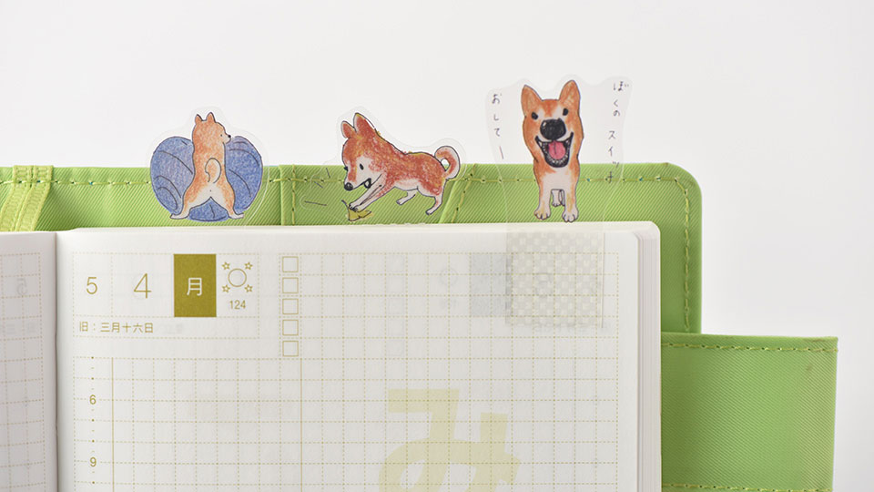 These clear bookmarks are illustrated with a cute Shiba-Inu dog by artist “A Cloud is Born.” The plastic sticky notes can be moved around and reapplied over and over again. Stick one at a time or line several up together so it protrudes from the edge of your book as a bookmark and serves as a great accent. There are six illustrations total, with three pieces each.