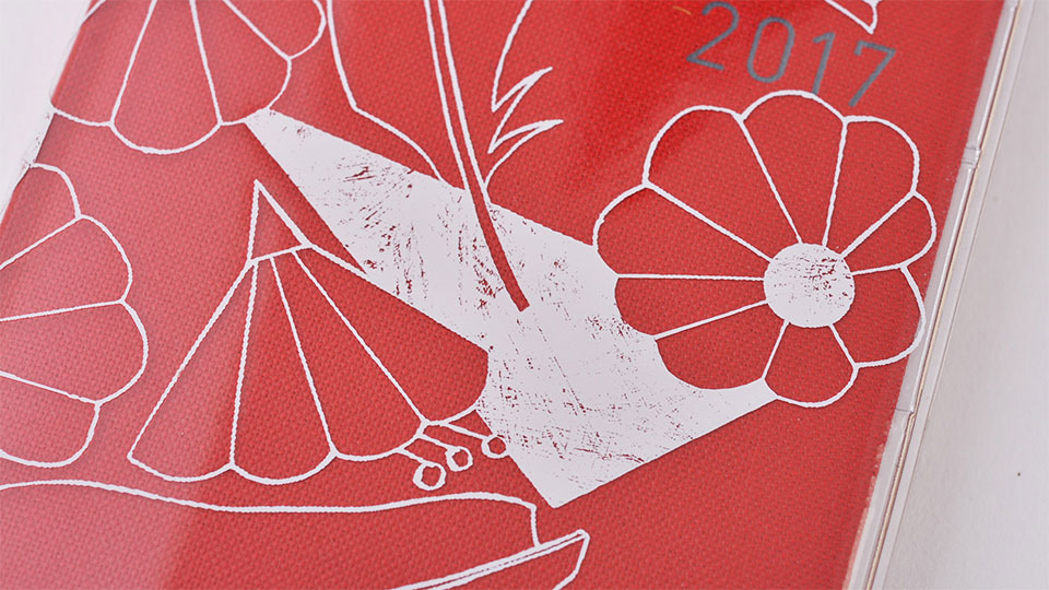 This is the decorated version of the Weeks Clear Cover, a protective, clear plastic covering that goes over your Hobonichi Techo Weeks. It protects your planner from wear and tear over the course of the year, and provides a sideways bookmark, a place to store your pen, and two card-size pockets.