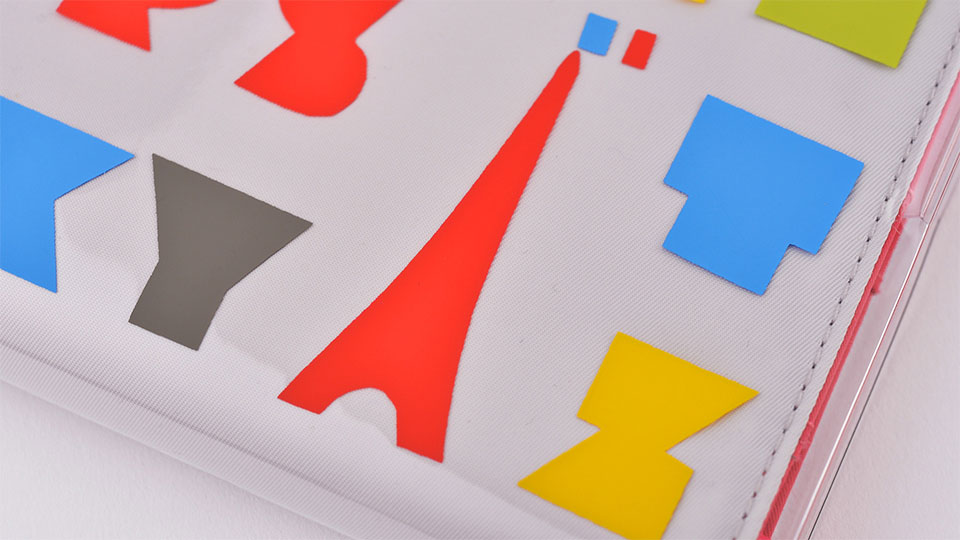This is the decorated version of the Cover on Cover, an optional, extra covering that fits select Hobonichi Techo covers to protect them from wear and tear while instantly giving the cover a fresh new look. (Not for use directly on book.) It also provides a place to store postcards, pictures, and other decorations to spruce up the look of your cover. Feel free to store family pictures, travel postcards, and other decorations inside the Cover on Cover for additional customization.