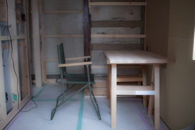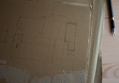 作り付けの収納家具の寸法を実際にボードの上に描き、