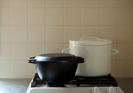 アンティークの北欧の鍋とともに、 土鍋、取り皿、鍋つかみ、鍋敷きなど 鍋まわりのものを集めます。