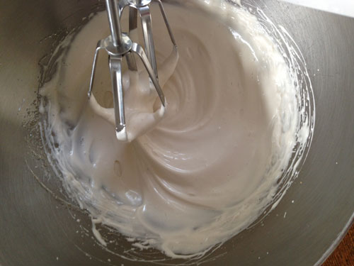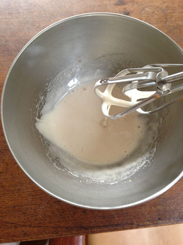 | (1分間泡立てたところ。 きめは細かくなりましたが、まだたらりとした感じです。) |