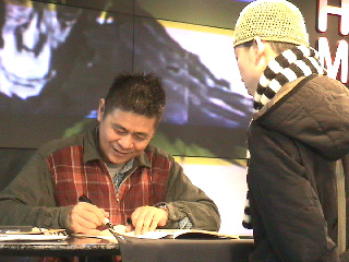 | Vol.5 初日終了! 明日はいよいよ日本縦断! ![]() HMV新宿南店でのトークイベントは 無事終了いたしました! 足を運んでくださったみなさん、 偶然居合わせて参加してくださったみなさん、 どうもありがとうございました! たくさんの人が足を止め、耳を傾けてくださり、 大成功のうちに終わりました、 という報告はもちろんなんですけど、 ええと、このトークイベント、 手前みそながら、とってもよかったです。 T部長こと土屋さん、今泉アナウンサー、 田中宏和さん、そしてdarlingこと糸井重里。 壇上にあがった4人が、 ──CDショップでのインストアイベントという 若干、照れくさいシチュエーションながら── 誰もごまかすことなく、 「これはいいものなんです!」と 胸を張るという、じつにストレートなイベントでした。 (その意味でいうと、いちばん照れていたのは 糸井重里本人だったかもしれません) ![]() さっそくメールが届きましたので、 1通ご紹介いたしましょう。