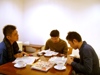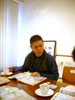 事務所でふたりでティッシュ片手に(笑)。
