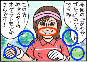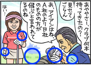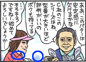 ・ゴルフクラブ、 手の形を修正。 ・シャツのしわ追加。 ・右手のリストバンド追加。 ・背景の芝生に書きたし。