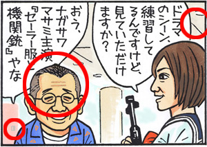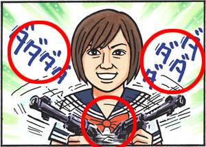 ・「ダダダ」の描き文字に 線が増えた。 描き文字修正のパターン。 ・機関銃を持つ手の形。 ・ 機関銃をより詳しく。 より細かな書き込みをした パターン。