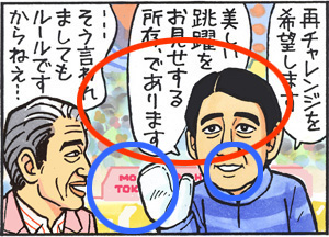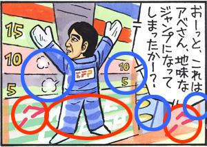 ・背景に書き込みを増やす。 ・安部首相の口の形。 ・ピンク色の看板追加。