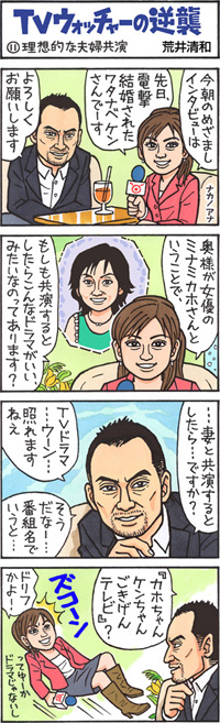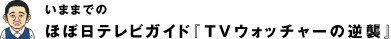 ハイクォリティーな似顔絵と シュール&ベタなダジャレでお馴染みの連載、 『TVウォッチャーの逆襲』が本になった! そして、荒井清和先生と同じくテレビを愛する 「ほぼ日テレビガイド」チームも、 その本に深く関わっているのである! いったい両者はどのようにコラボレーションしたのか? 完成した本をサカナにいろいろ遊んでいきますよ。 男子部と女子部の対談に続きましては、 「修正点発見クイズ」ですよー。 今回の単行本化に際して、 荒井先生は原稿を執念深く修正しています。 さて、いったいどこを修正したのか? 頭の体操のつもりでレッツチャレンジ!