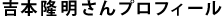 | 吉本 | いろいろありましたね。 まぁ、去年には、いちど死にかけましたから。 |