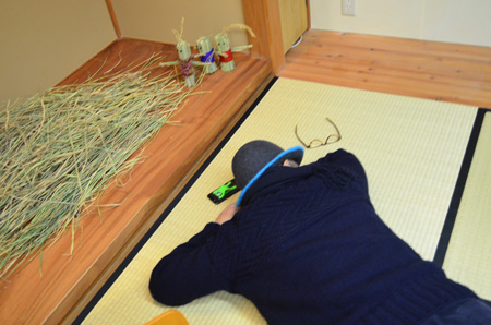 (ぶつぶつ言いながら寝転がる) |