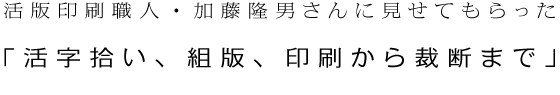 加藤 で、拾った活字を棚に戻すのに、また3日。