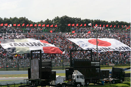 2005年の日本GPに出現した、琢磨選手の大応援旗。