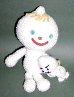 No.244*最終選考 タイトル:ダーぬいSと天使くん 作者名:海宝佳子 鼠穴あみぐるみ教室に参加させていただきました。 天使くんの応用編で darling顔のミニ天使くんをつくってみました。 つくってみた後で、 ダーぬいSが少々ゴリラの赤ちゃんというか、 ゴリラのひなっぽくて 自分でも笑ってしまいました。